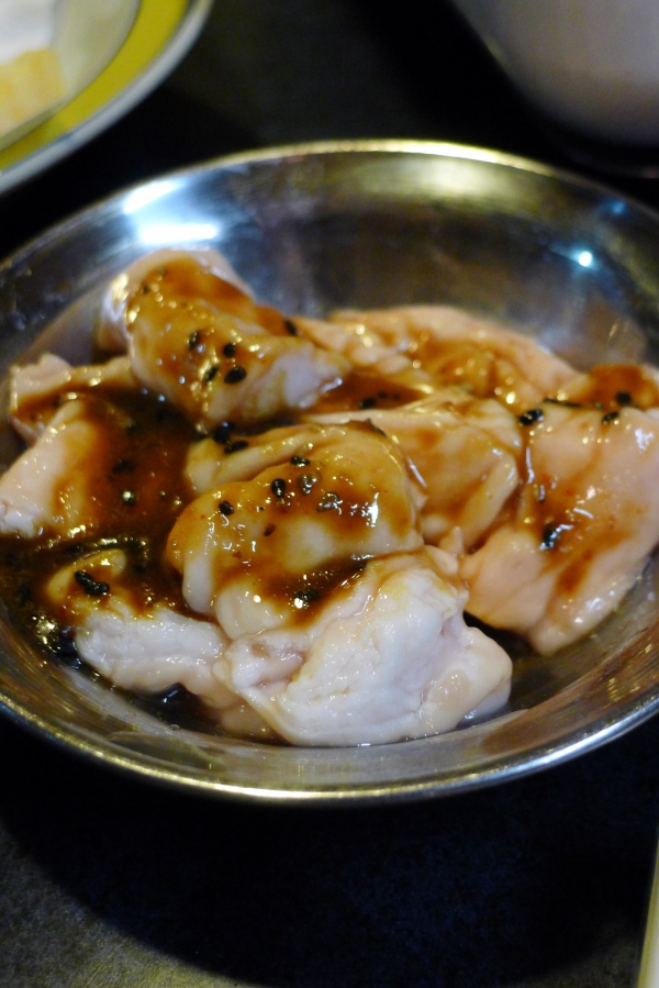 アツアツを弱った奥歯で噛み締めると丸腸の旨味ジュゥ〜スとタレが渾然一体になり上がりまして、血中カイロミクロンが急速飽和(このような現象はアリエませんので軽く、流しといて下さいませ〜。。。w)を惹起しましてエンケファリンが大漁に脳内にチャ〜ジされました。。。w