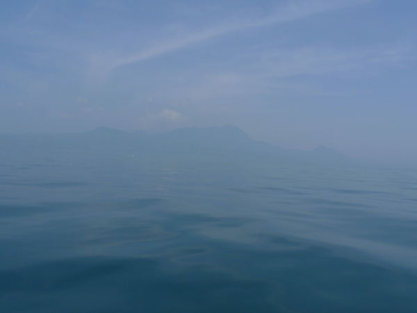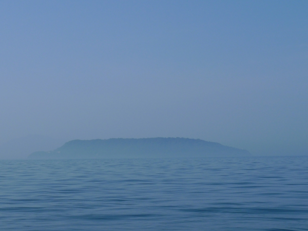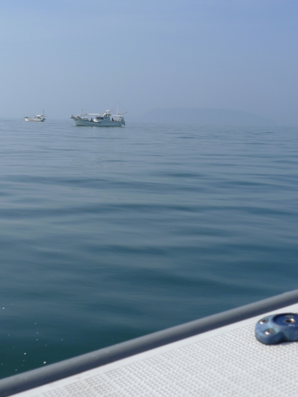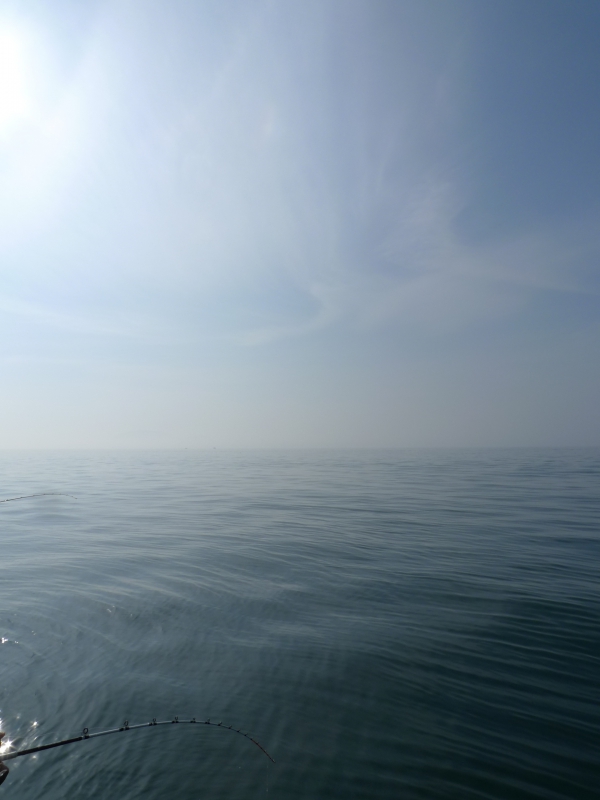 真鯛やヒラメ・マゴチが旨い!!とされる(実際、マジウミャァァァ〜です!!w)湯島周辺の景色ですが先日の釣行の際、海面温度が急に上昇したために海面上に湯気が立ち上がり、湯島のボトムが確認しにくくなる現象がありました。