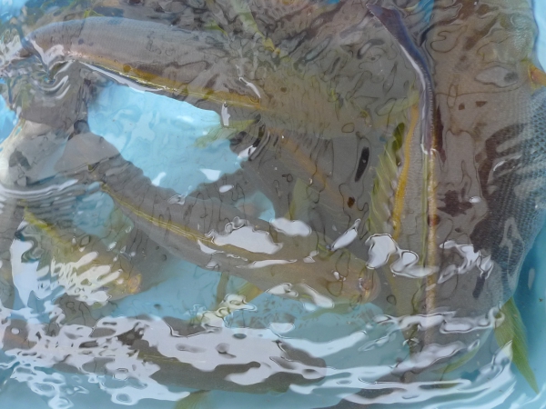 で、釣行と相成りましたがまさに「入れ食い!!」の状態でご覧の写真の様に小生の一人生け簀が見る間に「満員御礼!!」の状態に成り上がりました。
