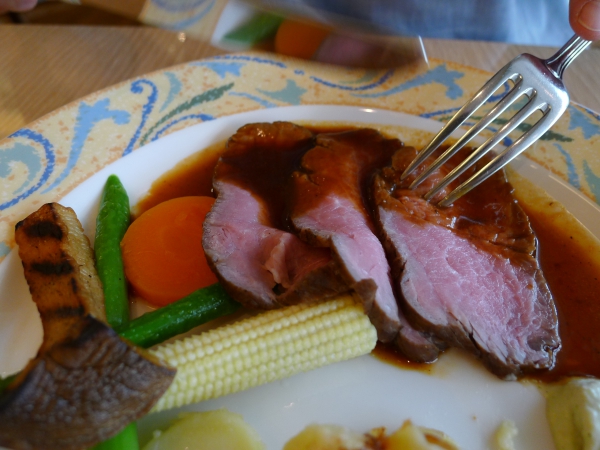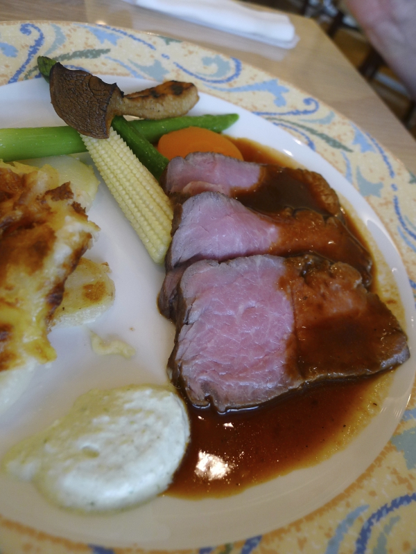 写真は歯が悪くても食べられる、羽田空港のハンバーグステーキとローストビーフです。w