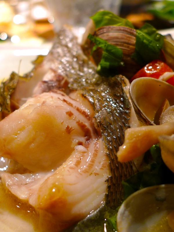 イサキの刺身、ウマズラカワハギの肝醤油和えから始まり「穫れたてイサキのアクアパッツア」、馬レバ刺しよろしく、「カワハギ肝ごま油塩・七味和え」合計4〜5皿作り上げてみました。しかも低カロリ〜ざんした。。。