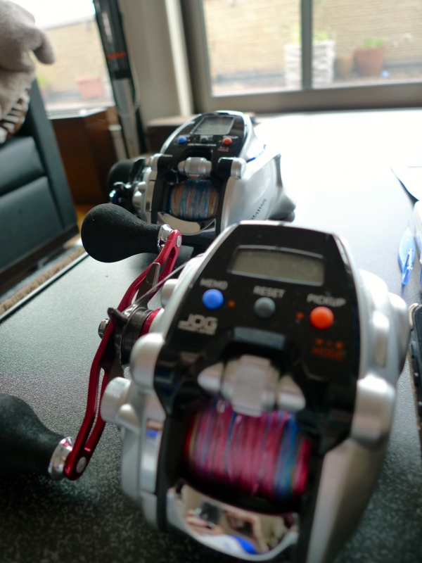 写真は拙宅で出番を待つ「電動リール達」でございます。 |