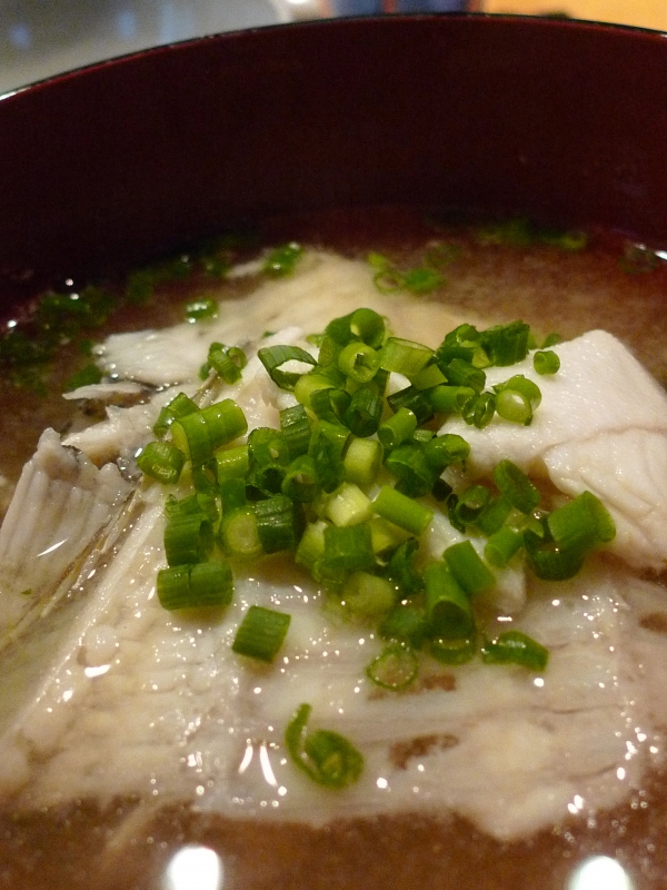 写真は「完食致しましたピラメちゃん達」の「フリャァァァ〜と味噌汁」と「アサリ汁とアサリ汁のラァ〜メン」でございます。。。