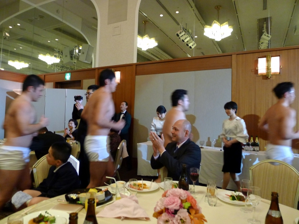 写真は甥っ子の披露宴の「水球部の舞!!」でございます。。。