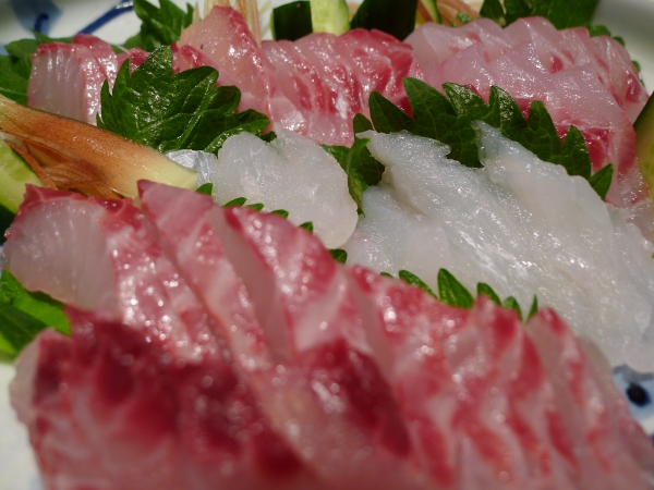 梅雨グレの刺身とイサキの刺身(ウマズラカワハギの刺身も含む、、、w) |