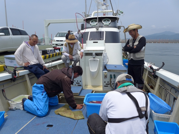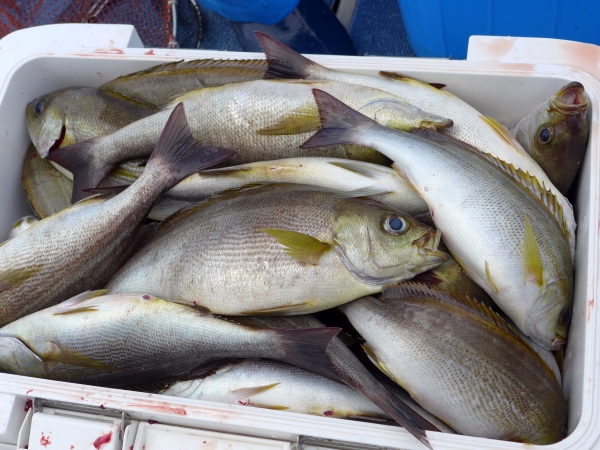 でっ、昨日の「オキアミ五目」、、、稀に見る「爆裂・爆釣!!」に見舞われまして竿出しから沖上がりまで当りっぱなし!!でイサキがクーラーに入りきれずにクーラーのフタを開けっ放しのまんま帰宅すると言う前代未聞の状態に生り上がり、昇華したのでありました。。。w 昨日、秀○丸に乗った釣り師達はみんな多幸感に溢れ、包まれてていたと思います。爆!! 大物を釣ってクーラーに納まらなかった事はありますが数釣ってクーラーに入り切らんダッタ事は初めてでした。。。w