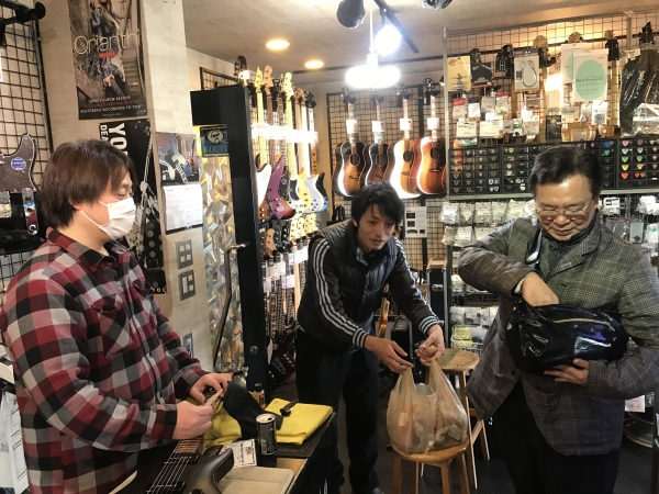 そして、スタジオイン、30年の隙間が埋まった瞬間でした。笑 そぎゃんギター🎸拭いたら、ギターがなくなるて、、、ギターの拭き方も昔とちっとも変わってオリませんでした。。。 帰りがけにビートニックのギター🎸拭きを熊本土産にプレゼントしましたら、音楽仲間は大笑いしていました。。。笑爆‼️♪(*^^)o∀*∀o(^^*)♪爆‼️