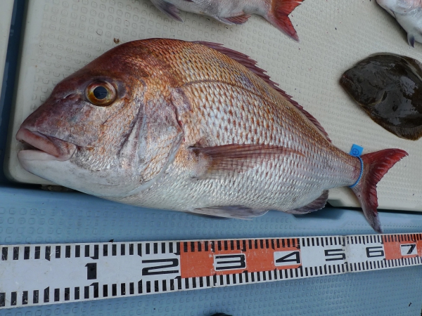 「真鯛ちゃん55cm超えましたよ!!これでやっとこさ、枕をたかぁぁぁ〜くして眠れます!!」2年半かかりましたが「ヤマさん超えました!!」わはは!!w |
